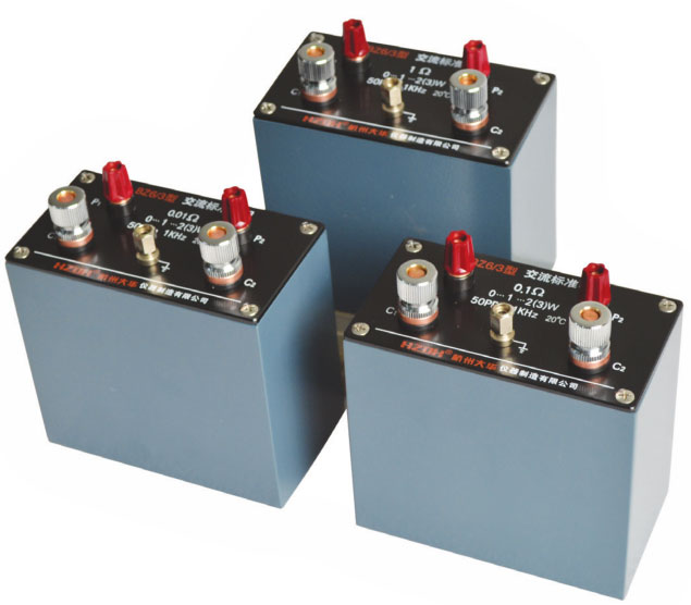 本标准电阻供电工试验研究机构、学校、 工厂的精密度室用作电阻标准;该标准电阻是高稳定的直流电阻,电阻材料采用优质锰基合金,经过特殊的工艺处理而成,所以该电阻具有稳定性好,温度系数小,使用功率大等特点。